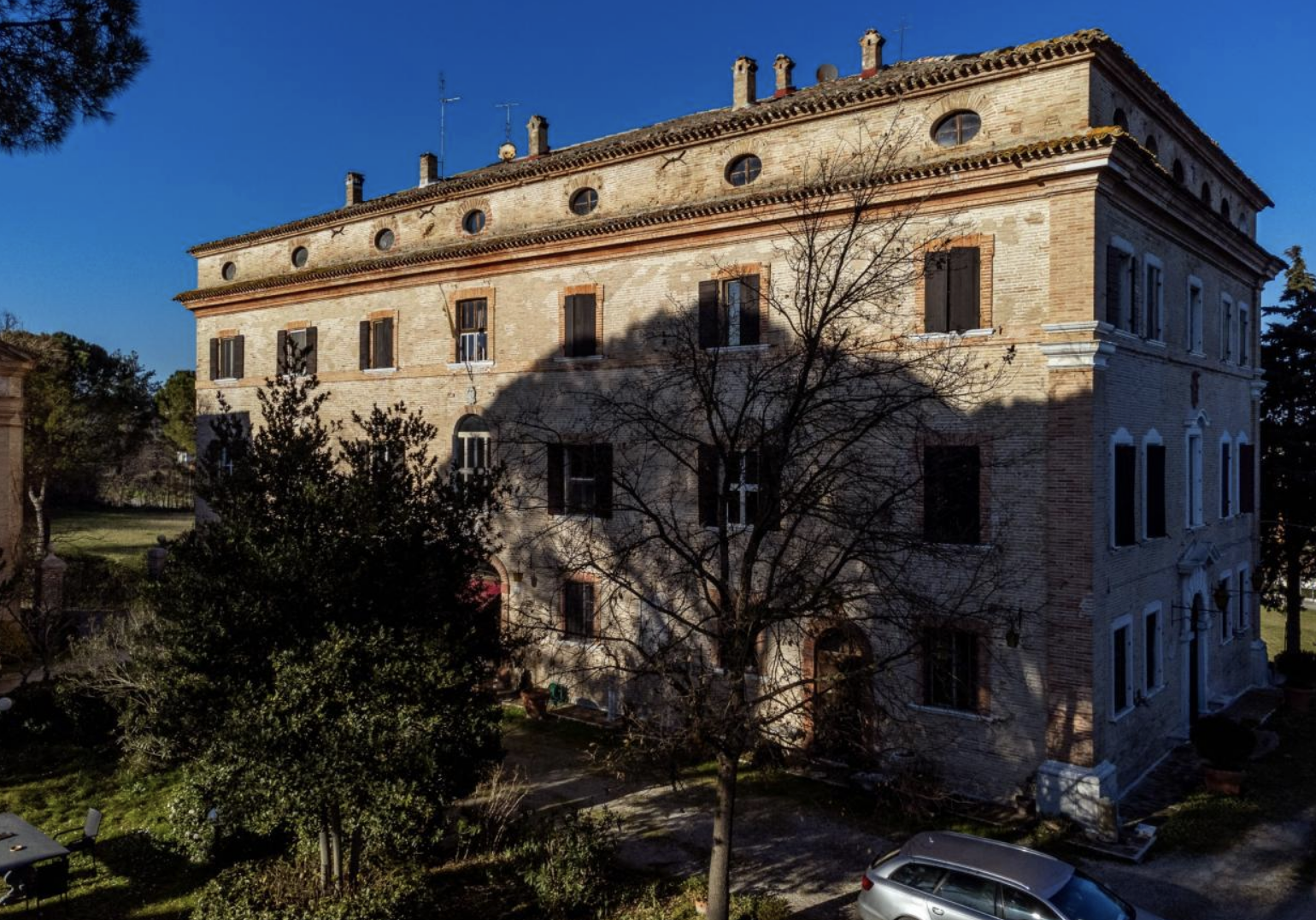 Il Palazzo Antonelli Castracane Augusti Martines, noto come "Palazzo delle 100 finestre", si trova a Brugnetto di Trecastelli (AN). Costruito su un antico castrum romano del 150 a.C., fu trasformato nel XVI secolo in castello dai Conti Antonelli. Nel 1759, il cardinale Nicola Antonelli lo ampliò, affidando i lavori a celebri artisti come Vanvitelli e Andrea Vici. Nel Novecento divenne residenza del conte Gino Augusti, figura di spicco militare e politica, che ospitò personalità come Churchill e D’Annunzio. Oggi il palazzo ospita la Casa Museo "Gino Augusti 900", con memorabilia di rilievo, ed è parte dell'Associazione Nazionale Case della Memoria.